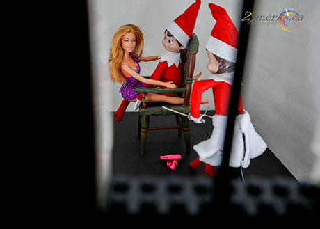 Well it turns out that Mrs. Elf was suspecting that Mr. Elf was being unfaithful. She begged me to follow him to see what he was up to (like an old time private eye). After she begged and pleaded and offered me a wad of money, I figured why not, she has a right to know. I grabbed my camera and off I went. After a couple of days, I followed him to a shady motel. You know the kind. The kind where the M in Motel was blinking while the other letters were fully lit. I watched to see which room he went into, and then snuck up to the window, and just what do you think I saw? Shocking, I know, right.....